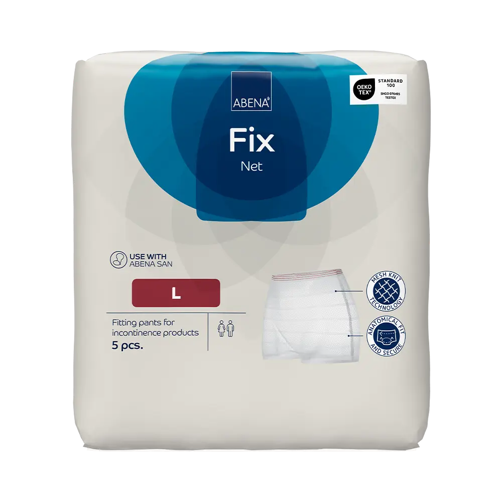 As ABENA Fix são umas cuecas de fixação em rede, macias e respiráveis, com perna, concebidas para manter os pensos de maternidade e os pensos para incontinência bem seguros após o parto. As cuecas possuem zonas horizontais de estabilização e um ajuste anatómico que mantém o penso junto ao corpo, garantindo uma elevada segurança contra fugas e conforto durante todo o dia.